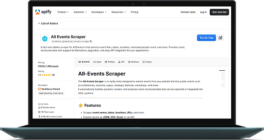The All-Events Scraper is an Apify Actor built to collect public event data from allevents.in including conferences, concerts, expos, meetups, festivals, workshops, and similar events.