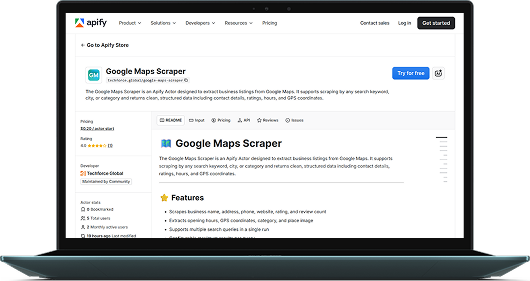 The Google Maps Scraper is an Apify Actor designed to extract business listings from Google Maps. It supports scraping by any search keyword, city, or category and returns clean, structured data including contact details, ratings, hours, and GPS coordinates.
