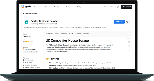 It uses the official Companies House Advanced Search API to provide high-quality, structured data for business intelligence, compliance, and market research.