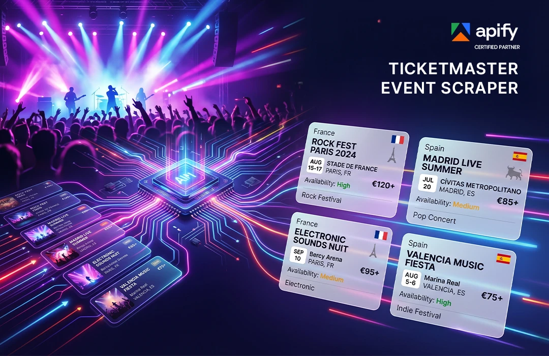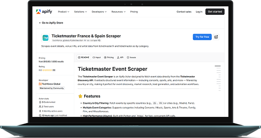 The Ticketmaster Event Scraper is an Apify Actor designed to fetch event data directly from the Ticketmaster Discovery API.