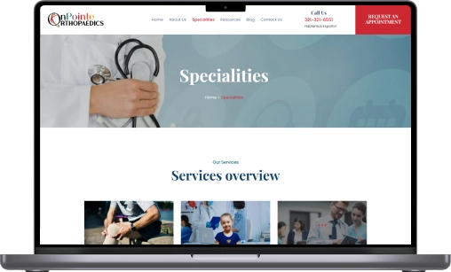 The modern, informative website helps establish On Pointe Orthopedics as a trusted name in pediatric orthopedic care.